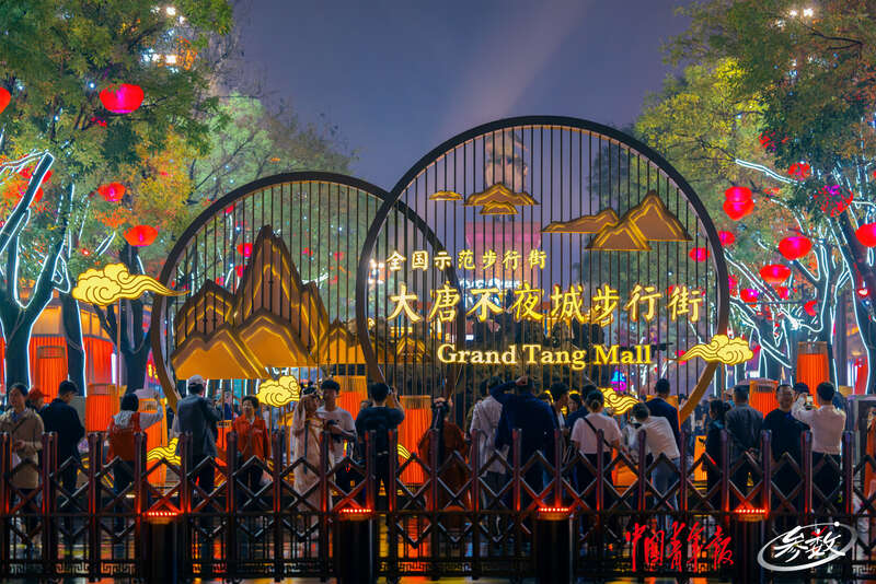 在西安,大唐不夜城步行街华灯初上,人头攒动。中青在线记者 白杨/摄![]()