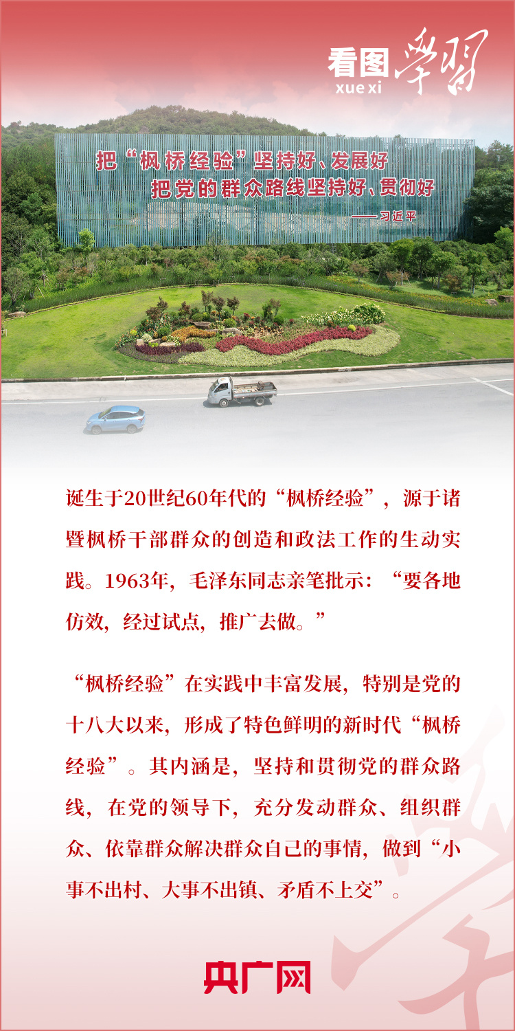 9月20日,习近平总书记在浙江考察,来到“枫桥经验”发源地诸暨市枫桥镇,参观枫桥经验陈列馆,强调要坚持好、发展好新时代“枫桥经验”。
