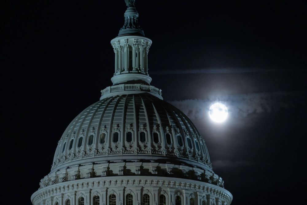 8月30日,“超级月亮”在美国华盛顿国会上空升起。新华社发(亚伦摄)