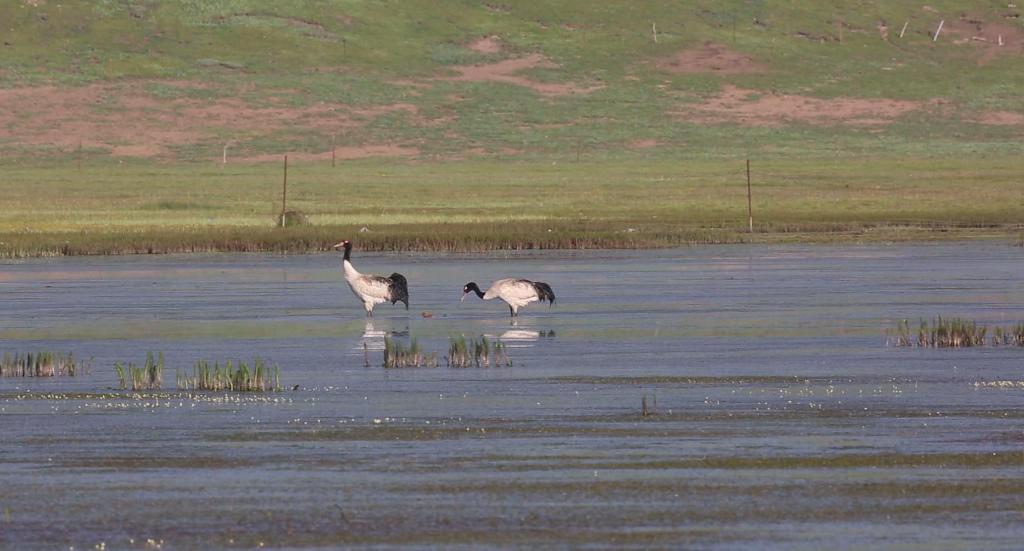 2022年7月1日,在河南县境内活动的黑颈鹤。(才项南加 摄)