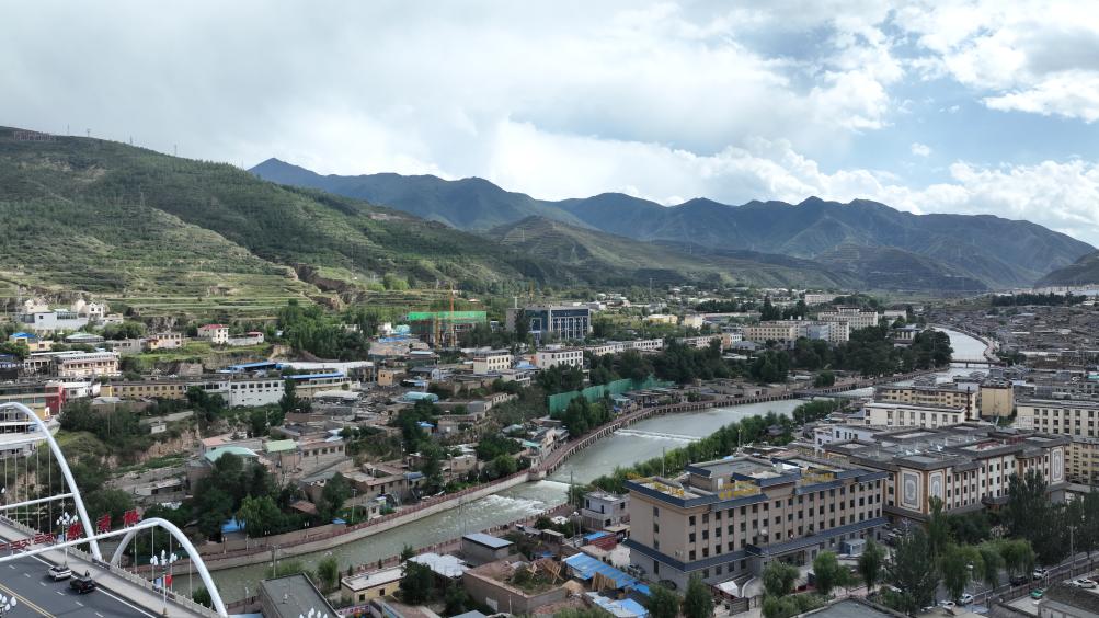 2023年8月24日,无人机拍摄的同仁市隆务河景色。(新华社记者张宏祥 摄)