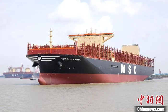 24116TEU超大型集装箱船“地中海吉玛”号,在中船长兴造船基地命名交付。 张黎 摄