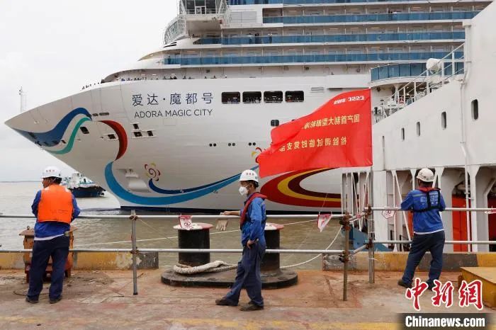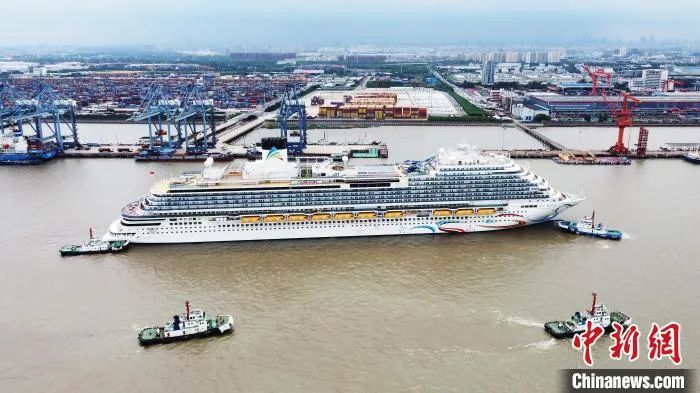 航拍中国首制大型邮轮完成试航的所有验证项目返回上海。中新网记者 殷立勤 摄
