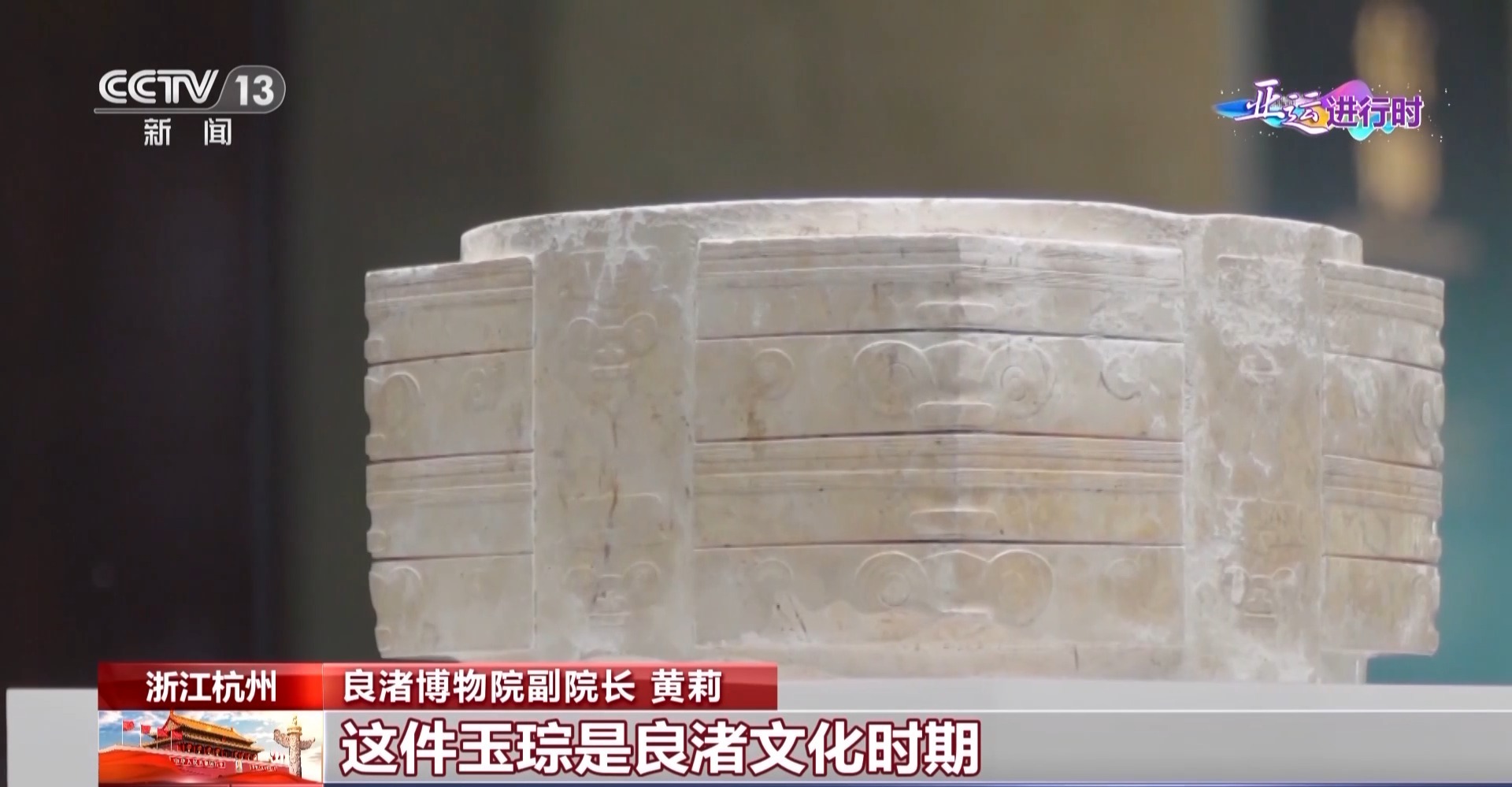 良渚博物院副院长 黄莉:玉琮是良渚文化时期最重要的玉礼器之一。我们可以看到,它的形制是内圆外方的造型,代表了良渚人原始的天圆地方的宇宙观,是良渚人通天地、敬鬼神的重要法器,代表了当时良渚王族所拥有的特殊权力。