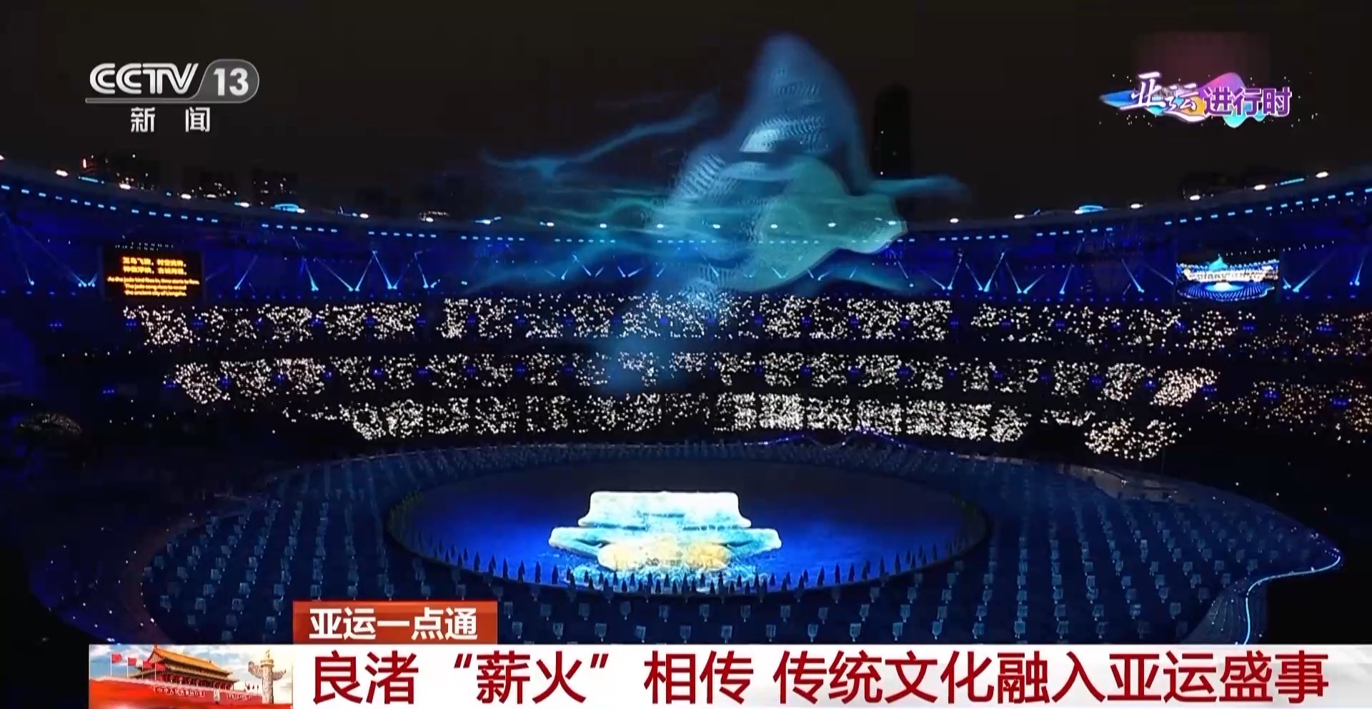 本届亚运会上大量源自传统文化元素的融入,擦亮了中华文明独特的精神标识,实证中华五千年文明史的良渚文化就是其中尤为突出的代表。“良渚”的意思是“美丽的水中陆地”,跨越五千年的古老文明与活力十足的亚运会相互碰撞,融合中产生了哪些创意的火花?