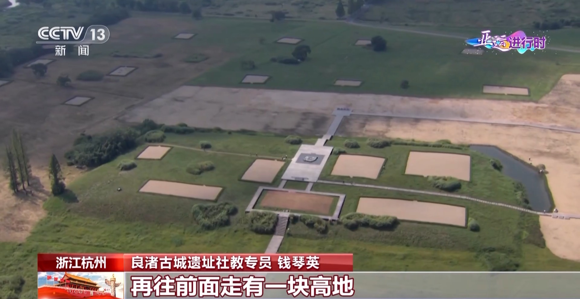 再往前面走,有一块高地,是良渚古城遗址最核心的地方,莫角山宫殿遗址,亚运火种就是在这里采集的。就像亚运火炬的名字“薪火”一样,良渚文明历经五千年,薪火相传,生生不息,通过亚运会又更加广为人知。
