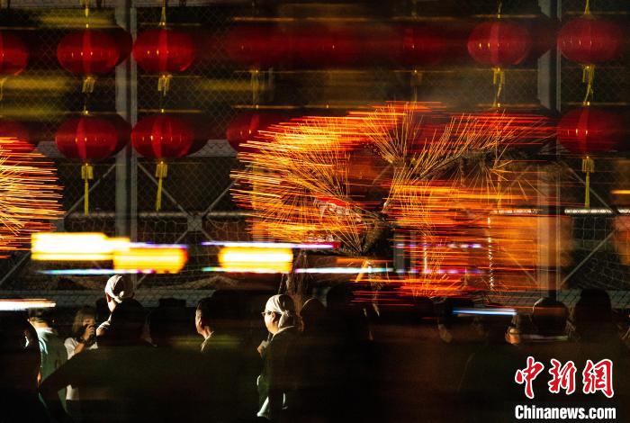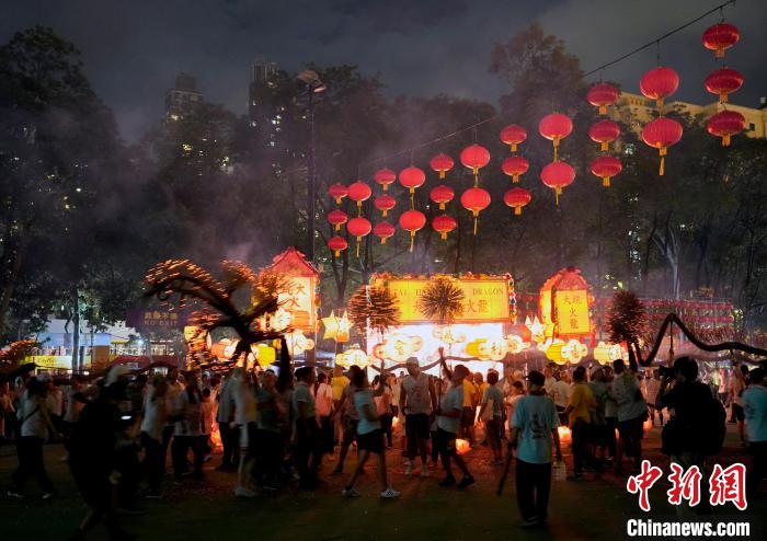 图为中秋之夜维园内舞动的火龙。 中新网记者 侯宇 摄