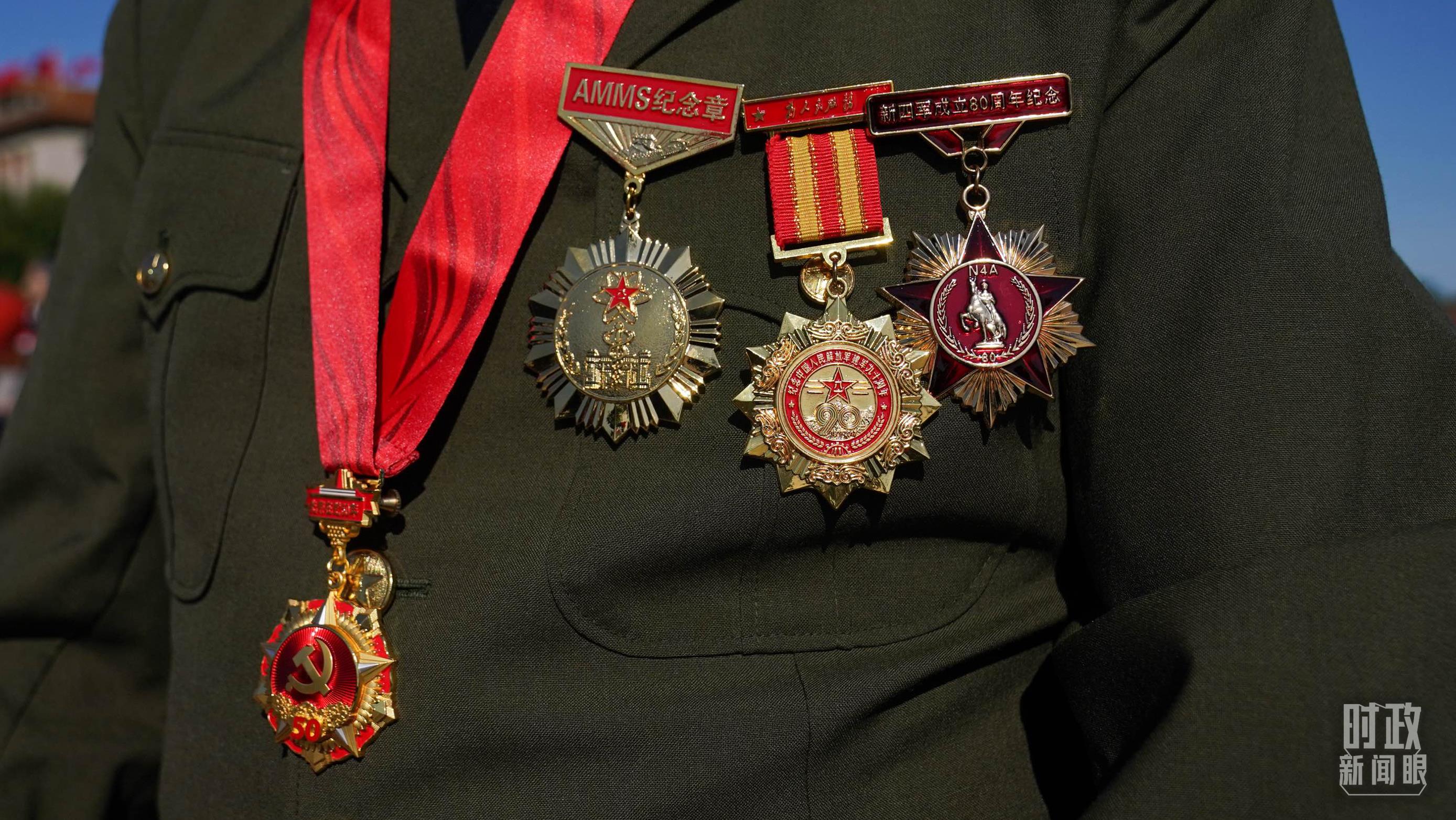 △仪式现场,老战士代表身上佩戴多枚纪念章。(总台国广记者李晋拍摄)