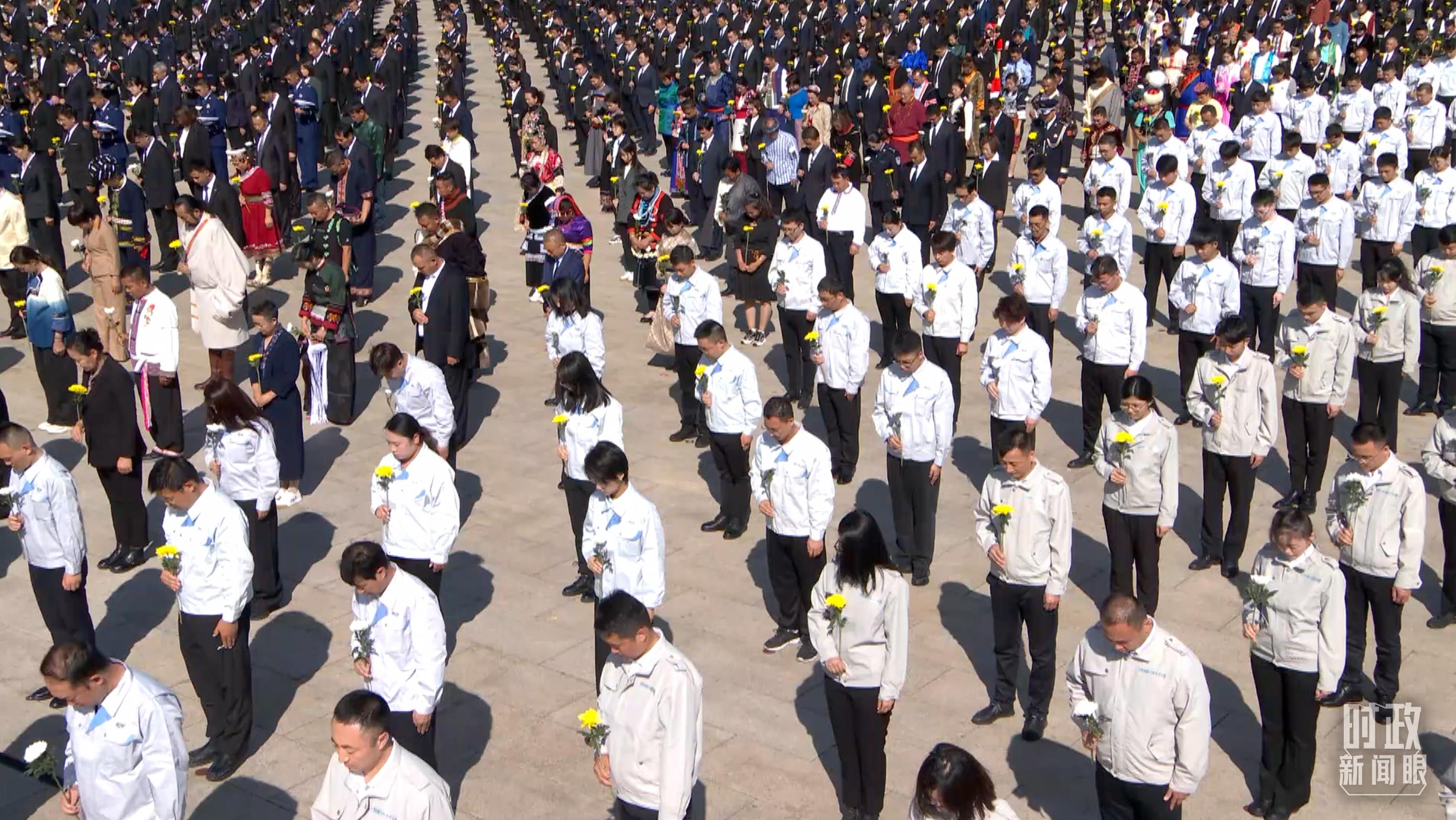 △仪式现场,向烈士默哀环节。