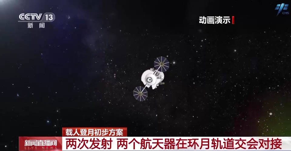 载人登月初步方案:两次发射 两个航天器在环月轨道交会对接