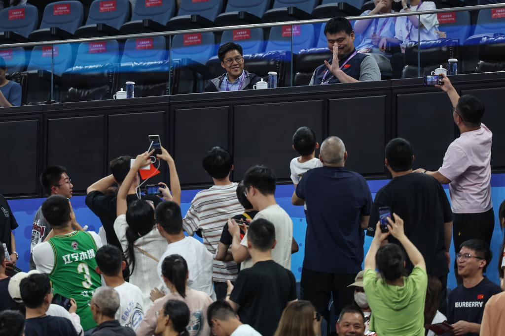 “一边倒”的比赛并未让球迷兴致减退,反而在中场休息时,中国篮球协会主席姚明和中国香港代表团团长霍启刚在看台上的会面掀起了现场又一个“高潮”。