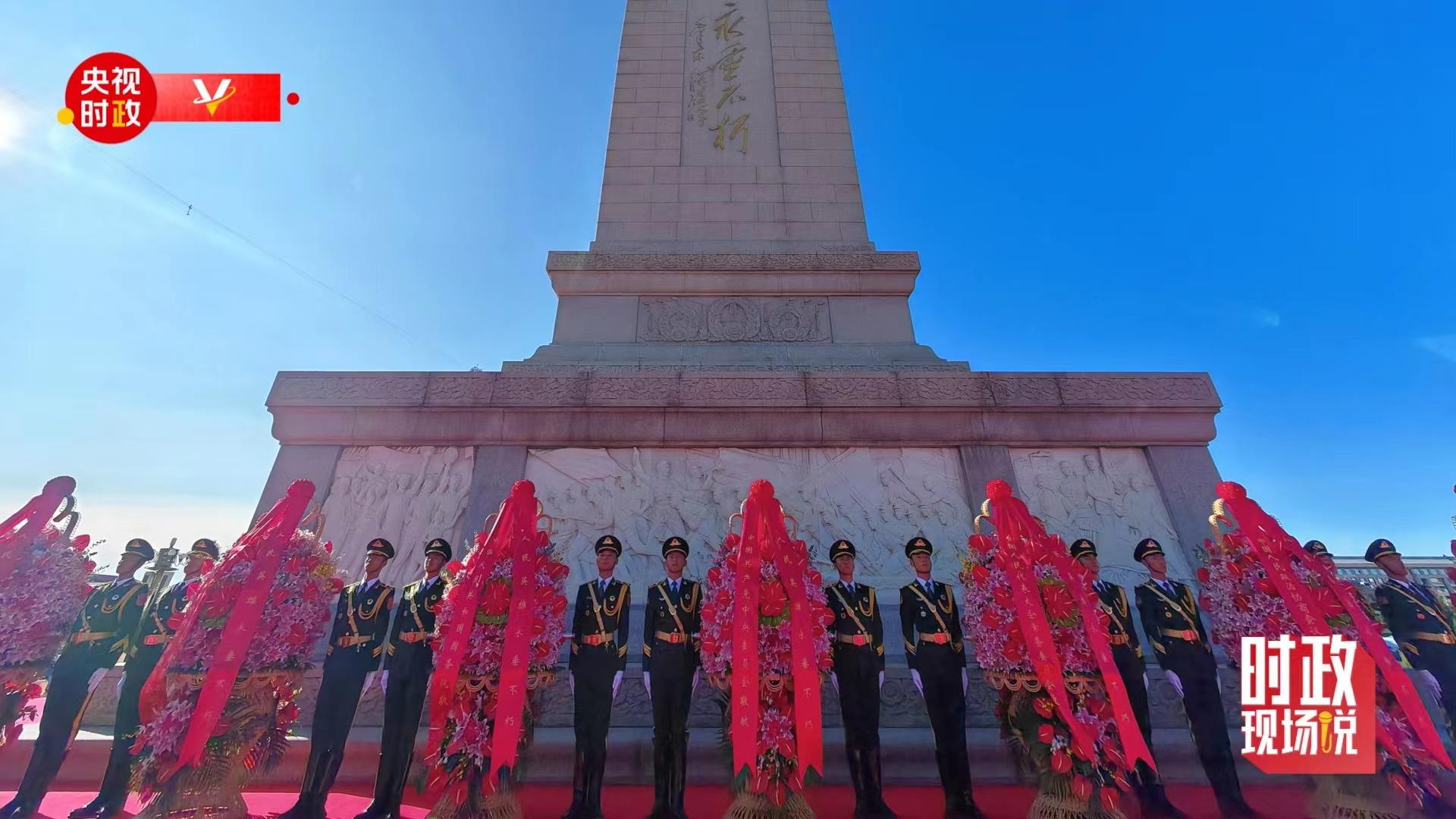在天安门广场向人民英雄敬献花篮