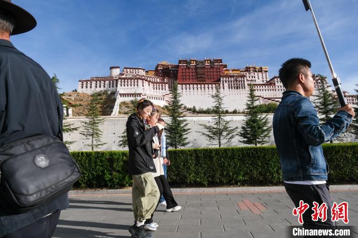 图为9月30日上午,游客、市民途经布达拉宫。江飞波 摄