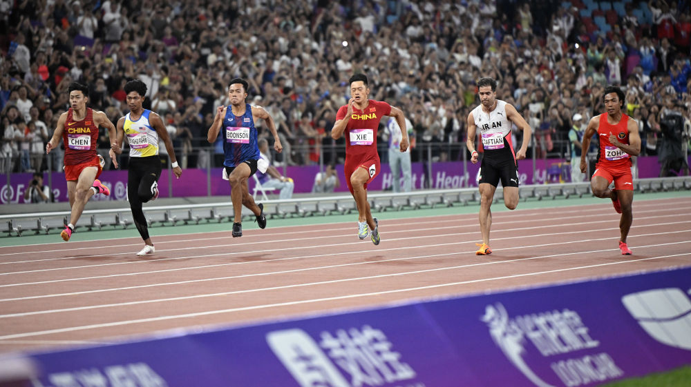 率先进行的女子100米决赛中,面对曾经在今年亚锦赛上战胜过自己的新加坡名将佩雷拉,扎着“哪吒头”的葛曼棋顶住压力,凭借强有力的冲刺以11秒23率先撞线。随后的男子决赛,名将谢震业战胜了对手,也战胜了自己。9秒97的夺冠成绩是他继2018年之后,时隔5年再次突破10秒大关。虽然2.4米每秒的顺风风速让他的成绩不能被计为达标巴黎奥运会的有效成绩,但谢震业赛后表示,虽然超了风速,但是成绩就在这里,战胜了自己心里就没有遗憾。