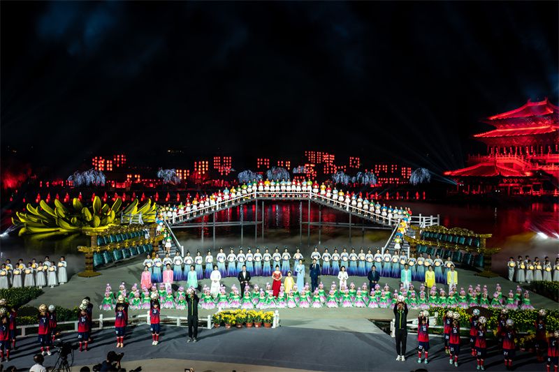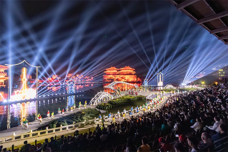 开幕式现场,大河财立方记者还看到,一批精彩舞蹈、歌曲接连上演,现场气氛热烈,一个充满活力的开封形象在表演中尽情展现。文艺演出以跨越开封千年时空为主线,分上篇《千年的汴京》、下篇《时代的开封》两大部分6个节目,以无缝连接的不同情境转换形式进行舞台呈现。