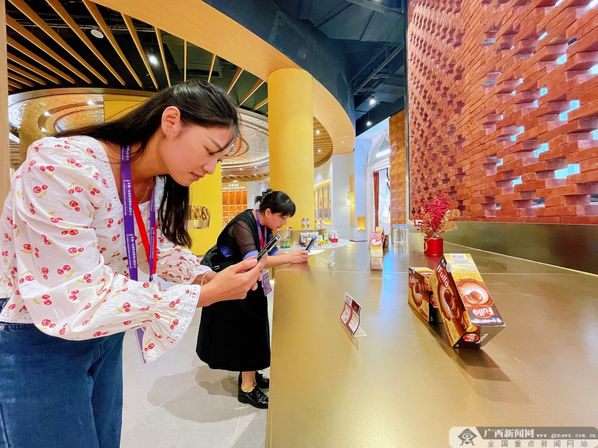 采访团参观体验中国—东盟特色商品汇聚中心“新加坡馆”。广西新闻网记者 胡戴炜 摄
