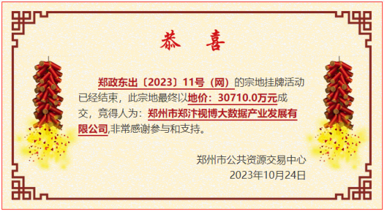 郑政东出〔2023〕11号(网)地块被郑州市郑汴视博大数据产业发展有限公司30710万元摘得