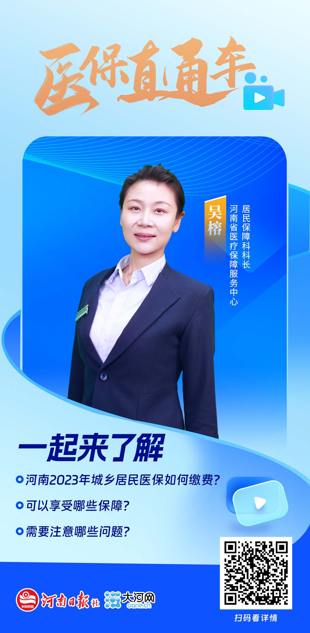 大河网讯 目前,河南省城乡居民2023年基本医疗保险集中缴费正在进行中。哪些人可以参加城乡居民医保?缴费时间和标准是什么?可以享受哪些保障?围绕群众关心的热点问题,记者采访了河南省医疗保障服务中心居民保障科科长吴榕,请她为大家一一解答。