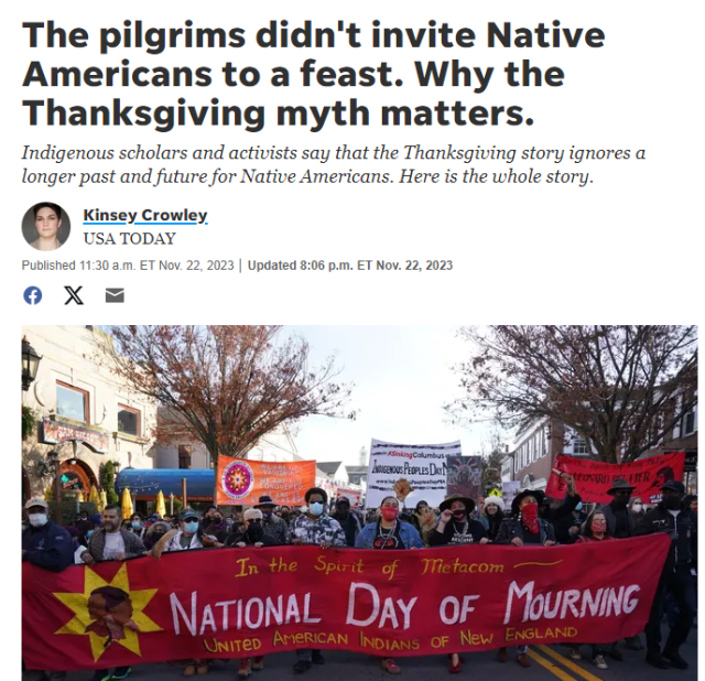 《今日美国》网站报道,一些土著学者和活动人士说,感恩节的故事忽略了土著人更久远的过去。