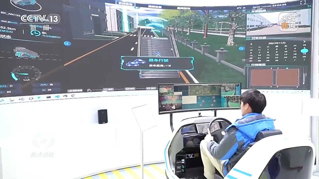 在工作人员的指导下,记者通过换挡和踩油门,就启动了约1000公里外封闭测试点的一辆航空食品车,到达指定位置后,车辆上方的旋梯自动升起,开始下一轮无人化操作。