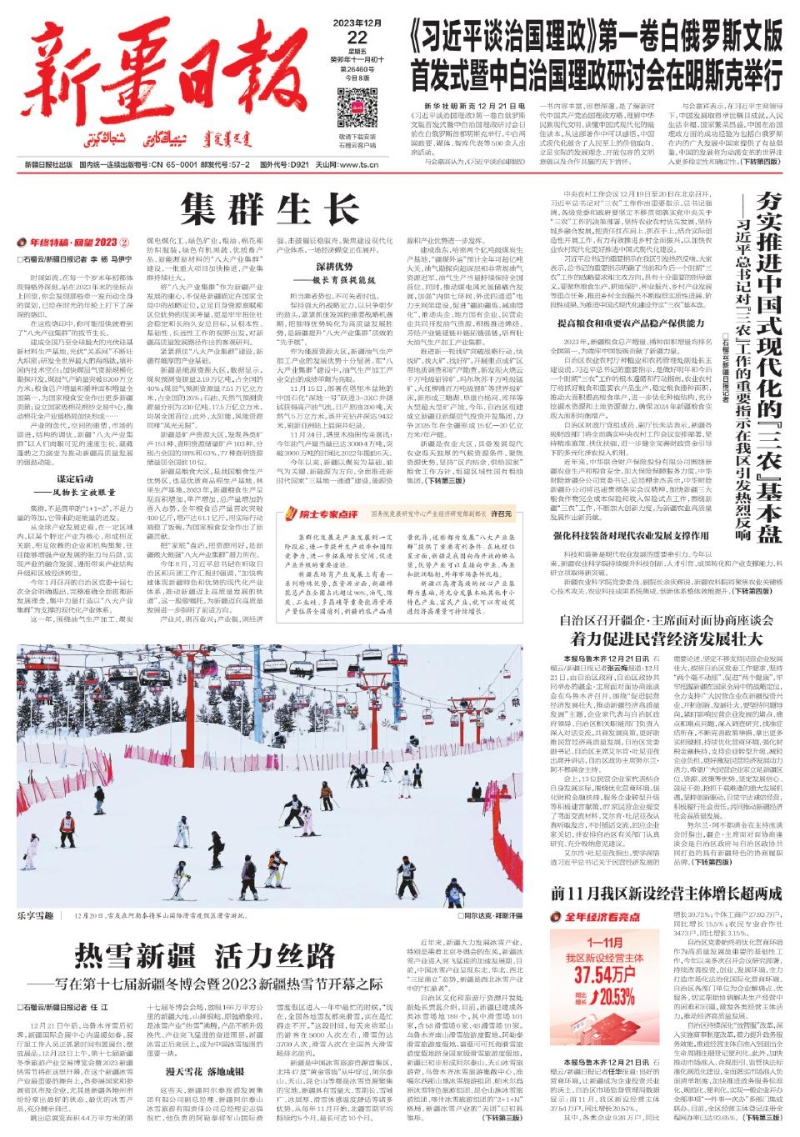 建成全国乃至全球最大的光伏硅基新材料生产基地,光伏“关系网”不断壮大织密;研发全世界最大的海绵钛,填补国内技术空白;加快煤层气资源规模化勘探开发,煤层气产销量突破8300万立方米;粮食总产增量和播种面积增量全国第一,为国家粮食安全作出更多新疆贡献;设立国家级棉花棉纱交易中心,推动棉花全产业链格局加快形成……
