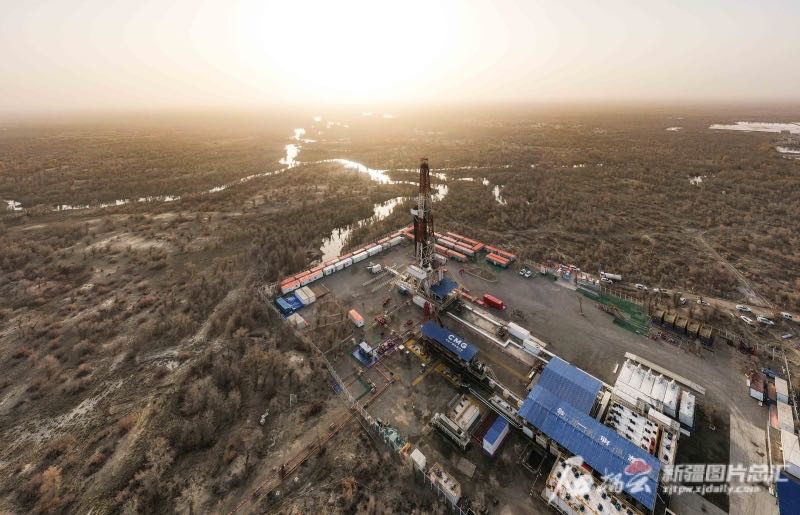 11月13日,阿克苏地区沙雅县境内,航拍的中国石化“深地一号”跃进3-3XC井。石榴云/新疆日报记者 吕伊晗摄