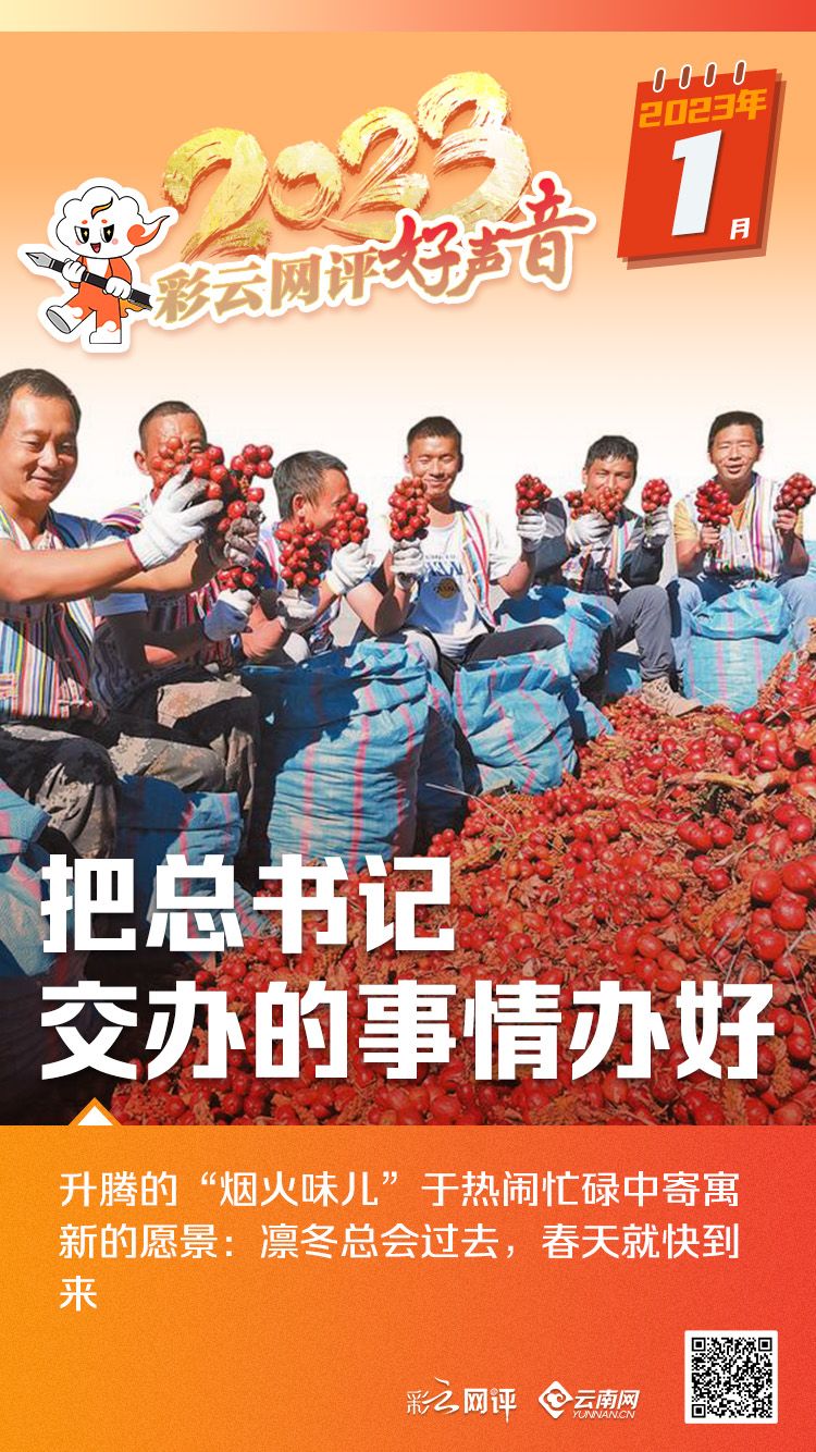 党的十八大以来,习近平总书记两次亲临云南考察指导、三次给各族干部群众回信,对云南工作作出一系列重要指示,为云南发展擘画蓝图。云岭儿女牢记嘱托,踔厉前行,交出高分答卷。勇毅前行,奋楫征程。开年后,彩云网评循着总书记足迹,到昆明、昭通、大理、保山、临沧、怒江六个地方采“味”,围绕“辣味儿”“花味儿”“果味儿”“茶味儿”“香味儿”“烟火味儿”看当地发展、聆听幸福声音,推出《“烟火味儿”升腾,极边小城活力潮涌》《“香味儿”扑鼻,怒江小产业做出大文章》《“辣味儿”够劲,昭通闯出新天地》《“花味儿”四溢,大理颜值内涵双提升》《“果味儿”十足,昆明辐射带动“拼”劲强》《“茶味儿”浓郁,临沧产业兴动能足》六篇“牢记嘱托启新篇把总书记交办的事情办好”“海报+”系列网评。
