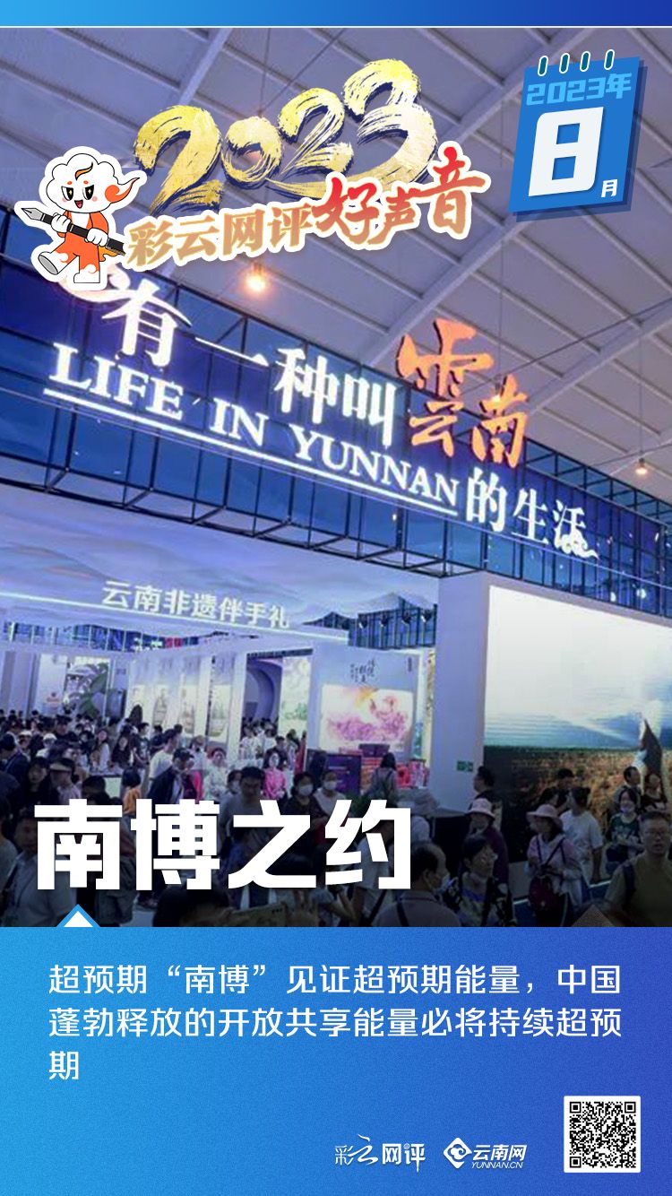 8月南博之约如期而至。第7届中国—南亚博览会暨第27届中国昆明进出口商品交易会在昆明举办。从进博会到广交会,从服贸会到消博会,再到效果全面超预期的南博会,一场又一场“中国之约”既为扩大内需提供支撑力,也为扩大对外开放和连接国内外经贸合作不断打开新场景,创设新平台。这份能量同样少不了把想法落实好的行动。自2013年首届起永久落户昆明,南博会十年来效果飞跃,已然为云南构筑全方位对外开放的新高地,做强做优做大南博会平台的努力付出写下生动注脚。