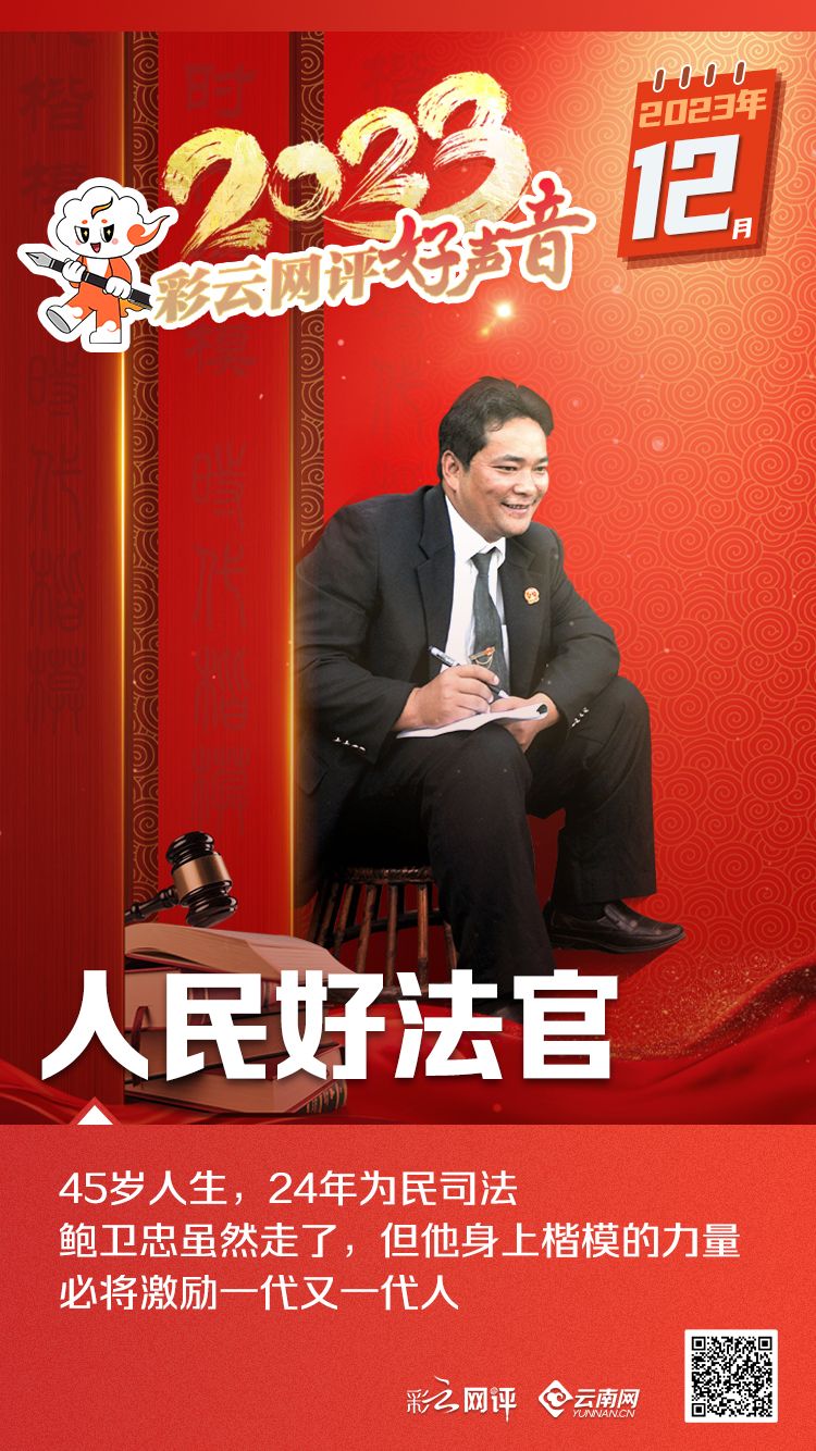 12月,人民好法官——鲍卫忠书写楷模的力量。提起鲍卫忠,你会想到什么?是“全国模范法官”“优秀共产党员”“年度法治人物”这些荣誉称号;还是跑遍阿佤山村村寨寨的佤族法官;又或者是同事、朋友眼中有情义和有责任感的“引路人”?12月18日,鲍卫忠被中宣部正式授予“时代楷模”称号。云岭大地上,英雄模范层出不穷,这是我们的骄傲,更是我们的光荣。“45岁人生,24年为民司法”年度法治人物的颁奖词中的这两句话,高度概括了鲍卫忠短暂而精彩的人生之路。鲍卫忠虽然走了,随那山间的细雨,永远地融入佤山,守护在西南边陲,但他的精神永远激励着一个又一个司法工作者为新时代司法事业担当奉献。