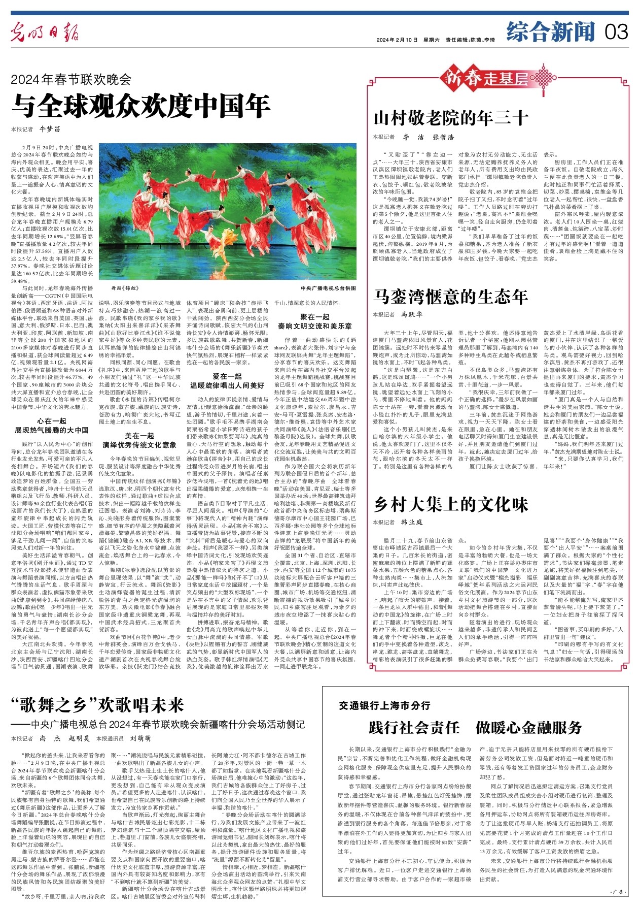 “掀起你的盖头来,让我来看看你的脸……”2月9日晚,在中央广播电视总台2024年春节联欢晚会新疆喀什分会场,来自新疆的6个歌舞团体同台共舞,欢歌未来。