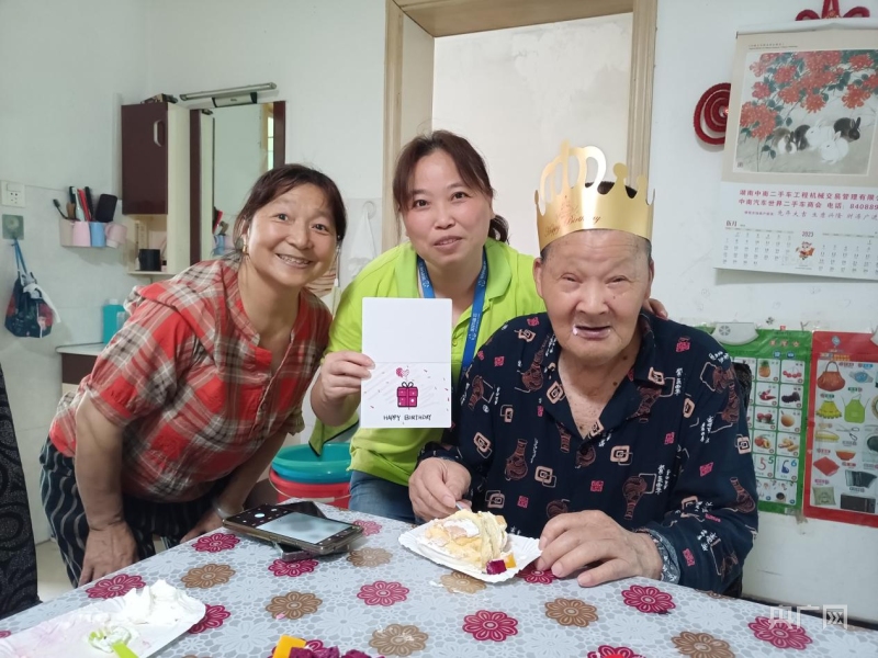 2023年5月,胡耀云与社区志愿者一同给舅舅过79岁生日(央广网发 中南汽车世界社区 供图)