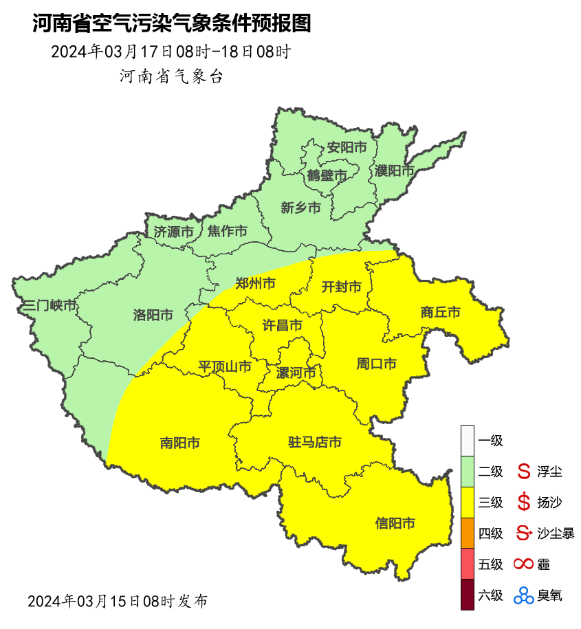 今天下午到夜里,全省多云间阴天,三门峡、洛阳、南阳、平顶山、驻马店、信阳部分县市有小雨或零星小雨,其他县市局地有零星小雨。北中部、东部有轻度霾。