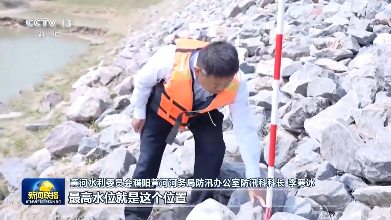 黄河水利委员会濮阳黄河河务局防汛办公室防汛科科长 李寒冰:(过去)黄河河道淤积十分严重,最高洪水位接近坝顶了。(现在)河道泥沙少了3米多,最高水位就是这个位置,从这个位置向上,就是我们调水调沙调出来的安全空间。