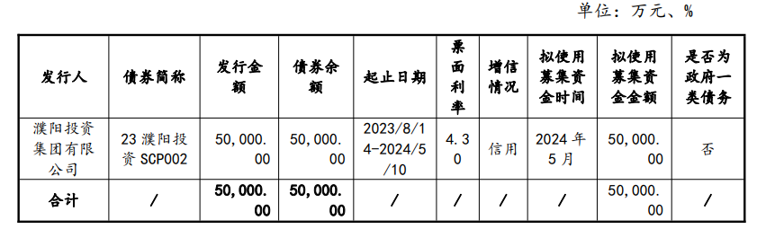 募集说明书显示,本期短融募集资金拟用于偿还“23濮阳投资SCP002”本金。具体如下: