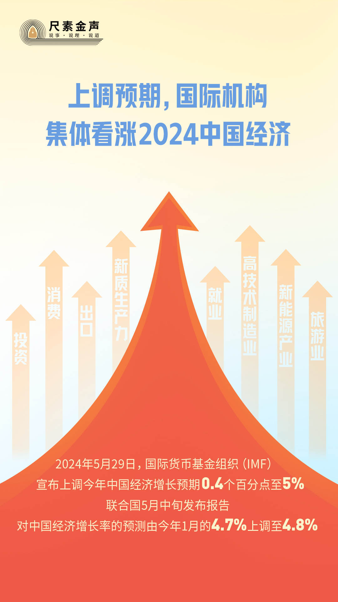5月29日,国际货币基金组织(IMF)宣布上调今年中国经济增长预期0.4个百分点至5%。联合国5月中旬发布报告,对中国经济增长率的预测由今年1月的4.7%上调至4.8%。4月以来,亚洲开发银行、摩根士丹利、高盛、瑞银等国际金融机构纷纷上调对中国经济增速的全年预期。