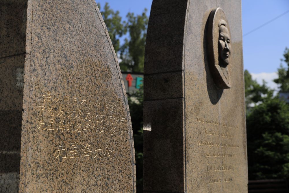 这是在哈萨克斯坦阿拉木图冼星海大街上的冼星海纪念碑。