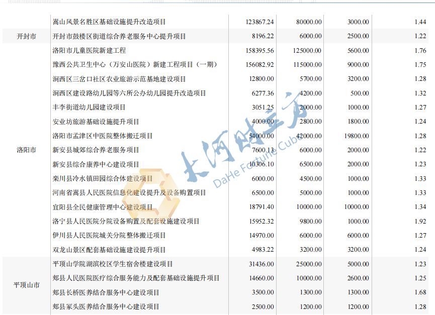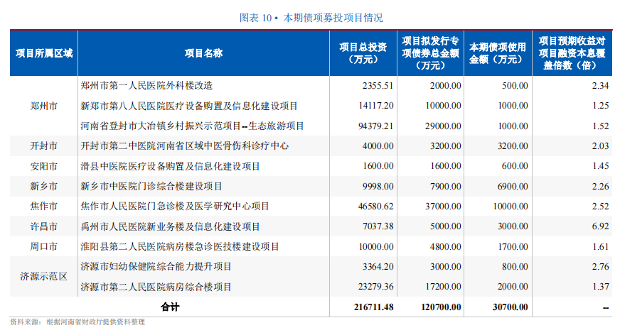 2024 年河南省社会事业专项债券(三期)-2024 年河南省政府专项债券(二十一期)发行总额3.07亿元,期限10年。涉及11个募投项目。