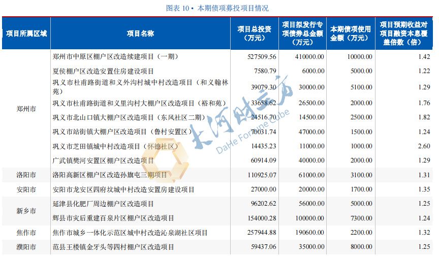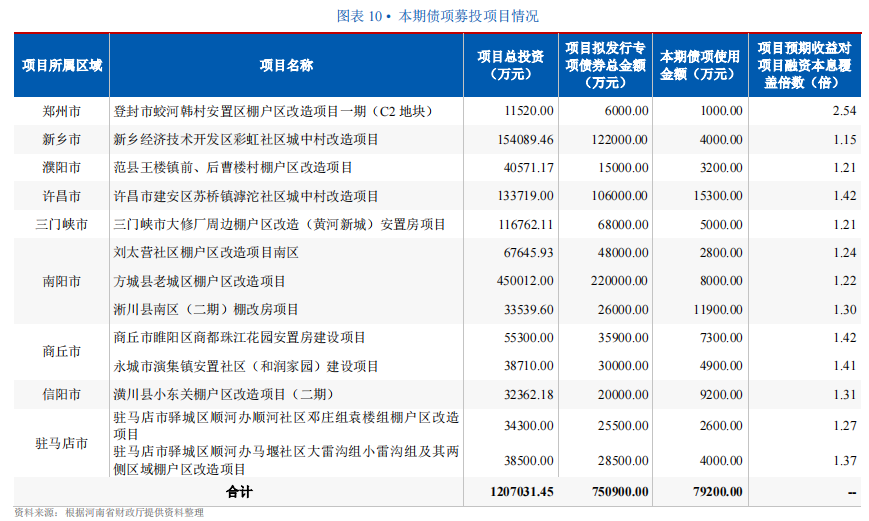 2024 年河南省棚改专项债券(六期)-2024 年河南省政府专项债券(二十六期)发行总额7.92亿元,期限10年。涉及13个募投项目。