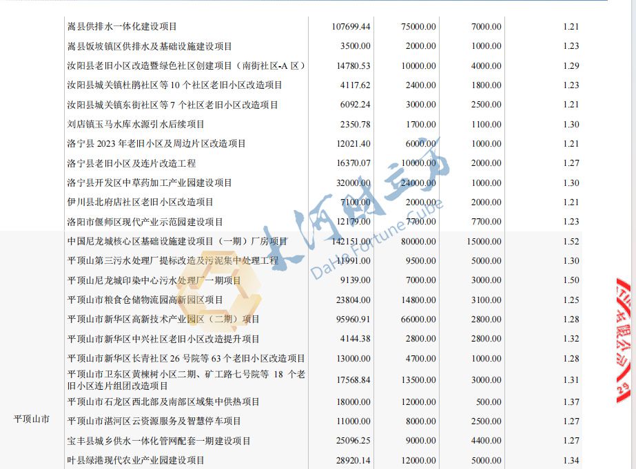 2024年河南省城乡发展专项债券(七期)-2024 年河南省政府专项债券(二十期)发行总额131.82亿元,期限30年。涉及285个募投项目。
