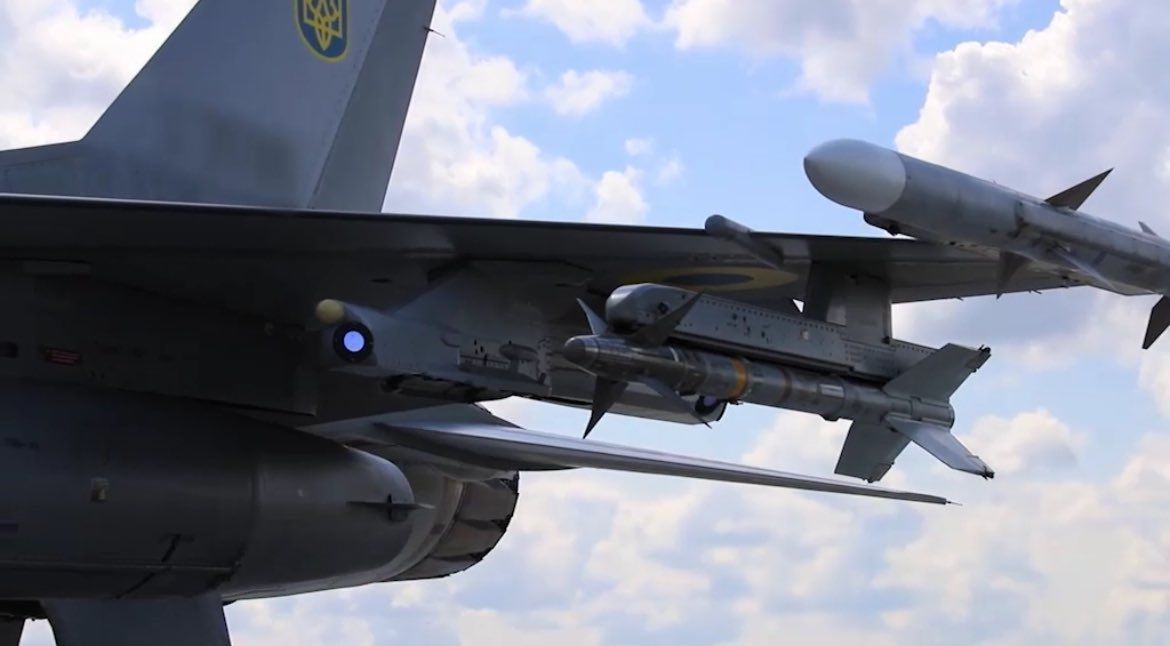 携带导弹的乌克兰空军F-16战斗机。 图片来源 乌克兰总统办公室