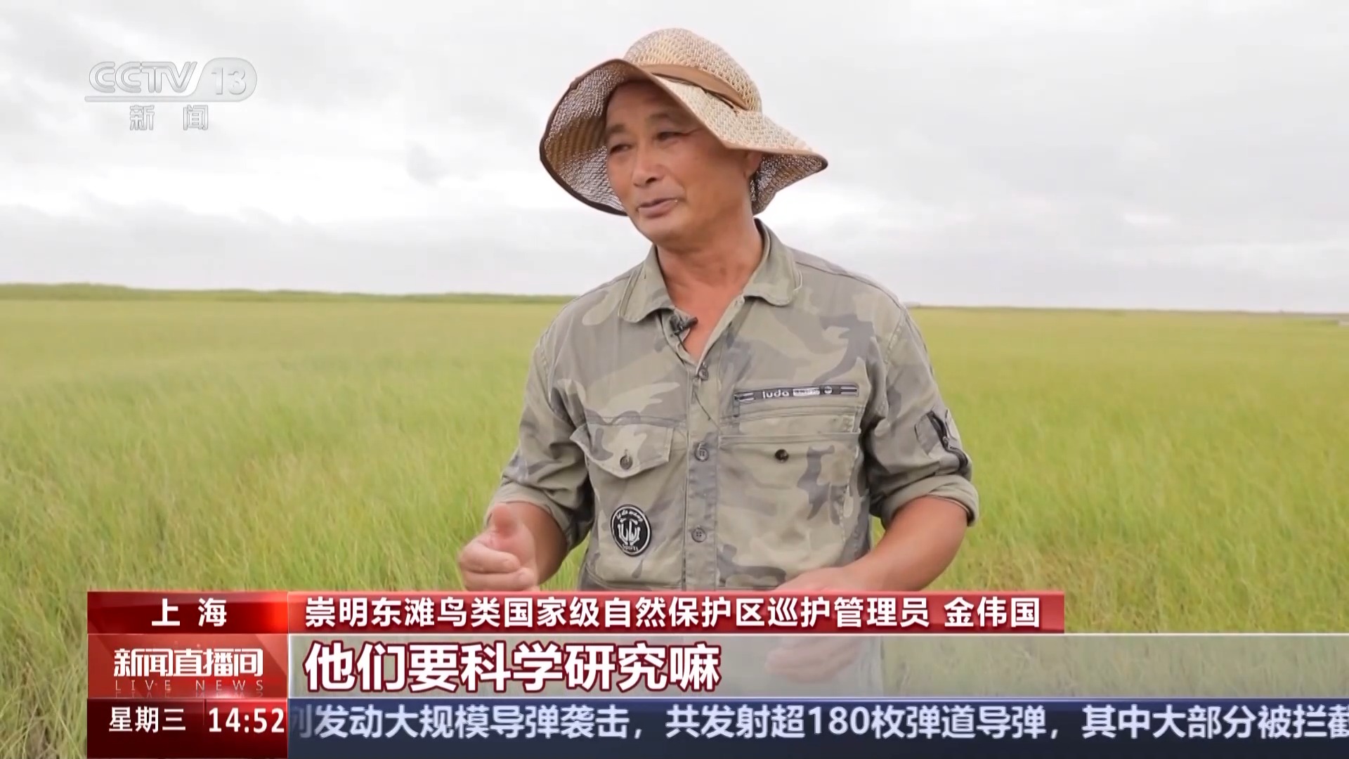 崇明东滩鸟类国家级自然保护区巡护管理员 金伟国:我就改行了,他们要科学研究,要捕一些鸟做环志,捕鸟季节我来捕鸟。像鸟迁徙多了我就来保护区,把偷猎的人看好,不要他们进来。