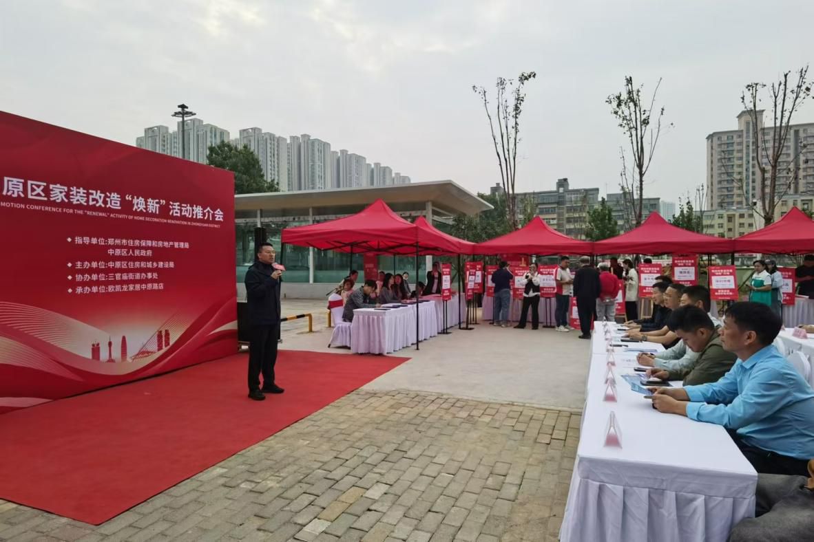 本次活动由郑州市住房保障和房地产管理局、中原区人民政府指导,中原区住房和城乡建设局主办。活动现场设置了家装建材展区,以实物展销、展板展示、宣传页发放、现场答疑等形式,集中宣传推广政府家装改造“换新”政策。