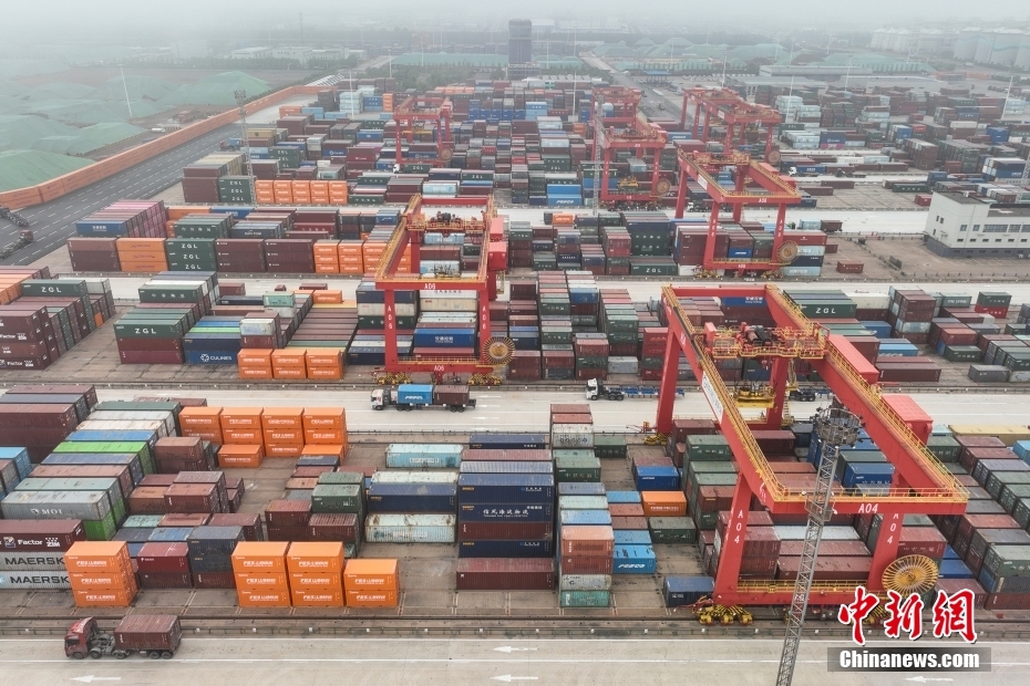资料图:航拍山东日照港全自动化集装箱码头。中新社记者 赵文宇 摄