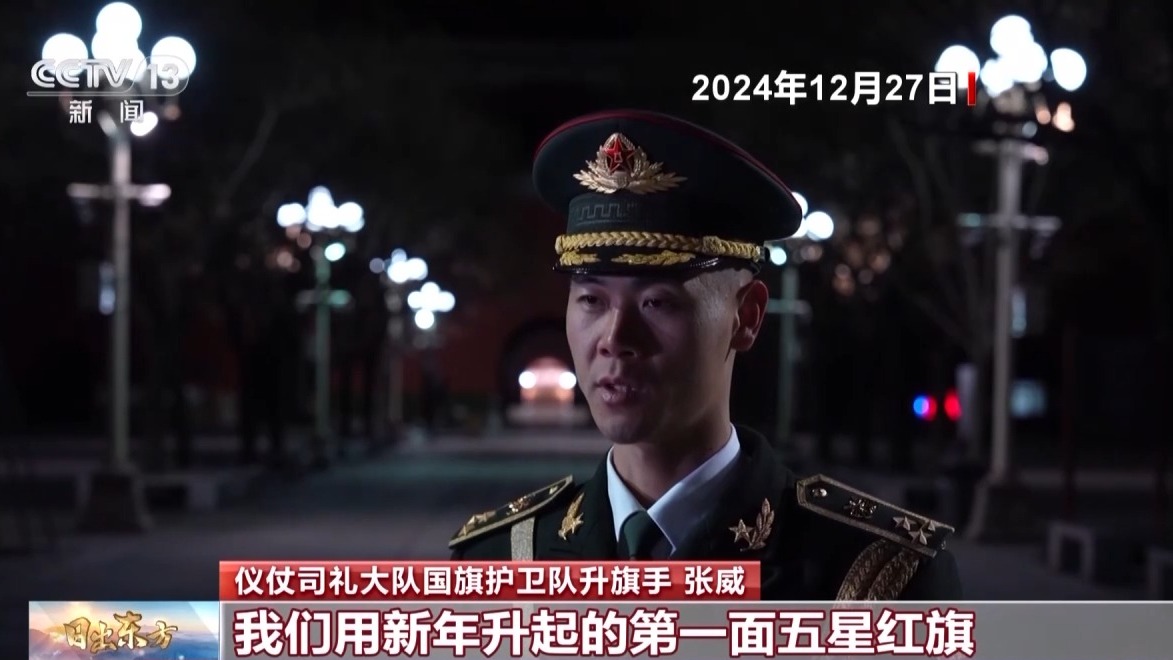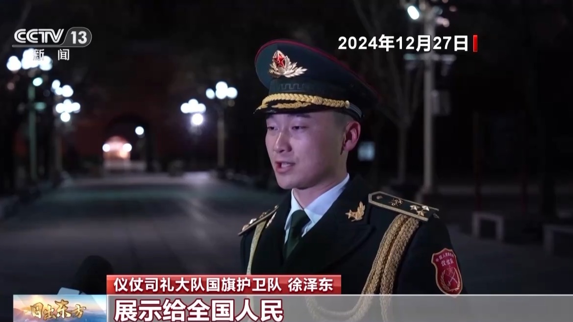 仪仗司礼大队国旗护卫队徐泽东:新年第一天,万象更新,我们希望以更高的标准、更饱满的精神状态展示给全国人民。