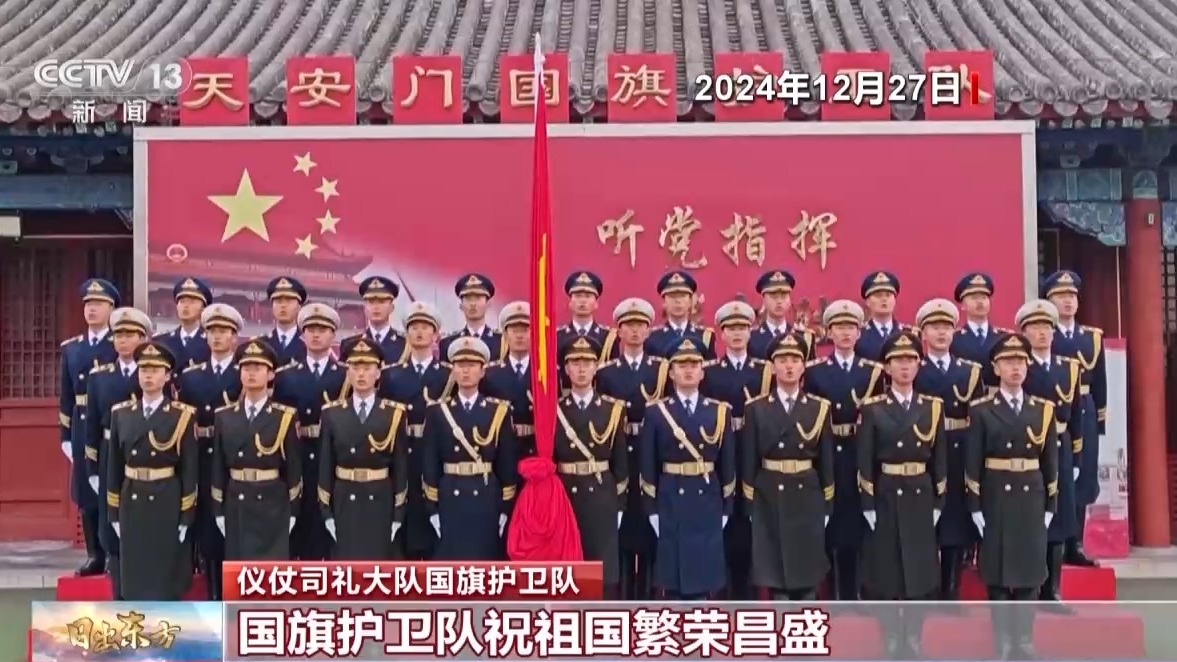 仪仗司礼大队国旗护卫队升旗手张威:我们用新年升起的第一面五星红旗祝福我们的伟大祖国繁荣昌盛,人民幸福安康。