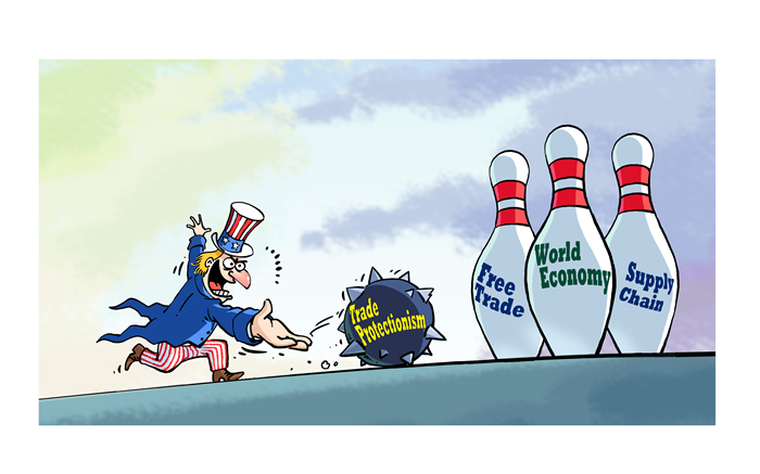 美国实施贸易保护主义的做法严重破坏国际经贸秩序,扰乱全球产供链稳定,损人不利己。