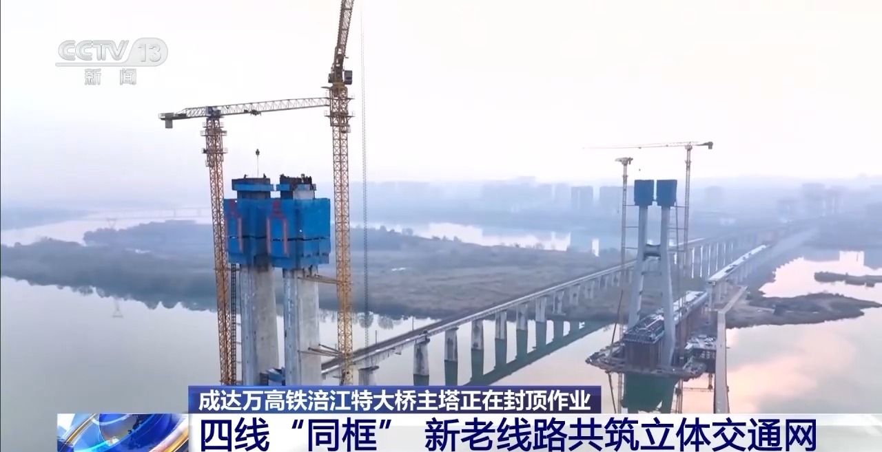 2025年开年之际,各地加速推进重点工程、重点项目的建设进度,位于四川遂宁的遂宁涪江特大桥加紧施工,目前主塔正在进行封顶作业。这座桥全长5585米,是成达万高铁全线最后一座控制性桥梁。
