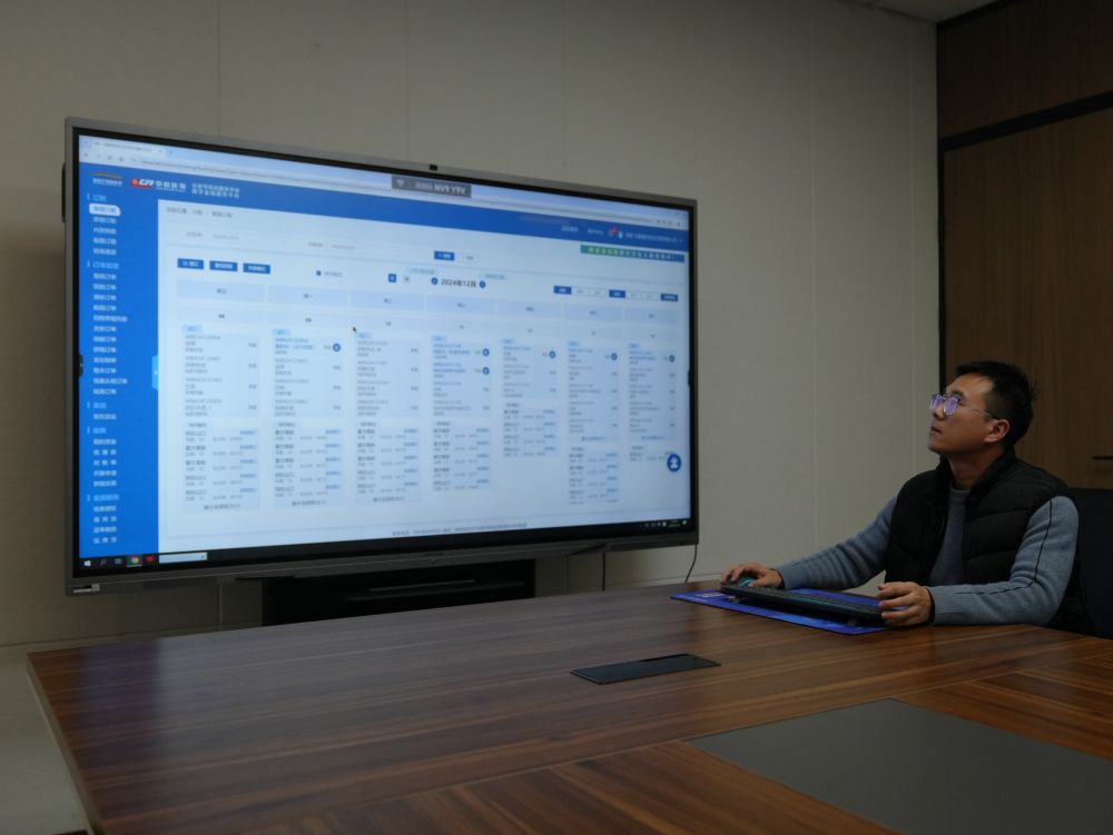 2024年12月3日,西安自贸港建设运营有限公司工作人员在演示中欧班列“长安号”综合服务平台功能。新华社记者 赵英博 摄