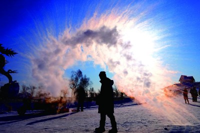 游客体验泼水成冰。