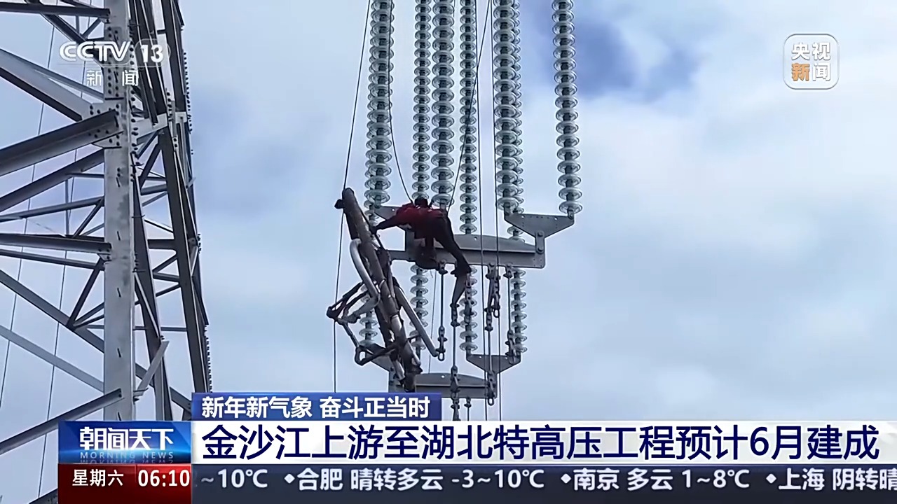 开年以来,金沙江上游至湖北正负800千伏特高压直流工程进入全面架线阶段,电力工人们正在川西高原的百米高空上开展作业,整体工程预计将在6月份建成。